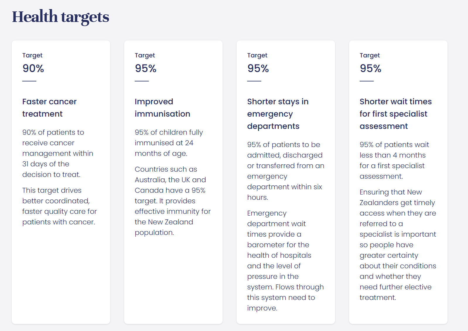 Figure 10. Five Targets for the Health System. https://www.health.govt.nz/statistics-research/system-monitoring/health-targets#Thetargets