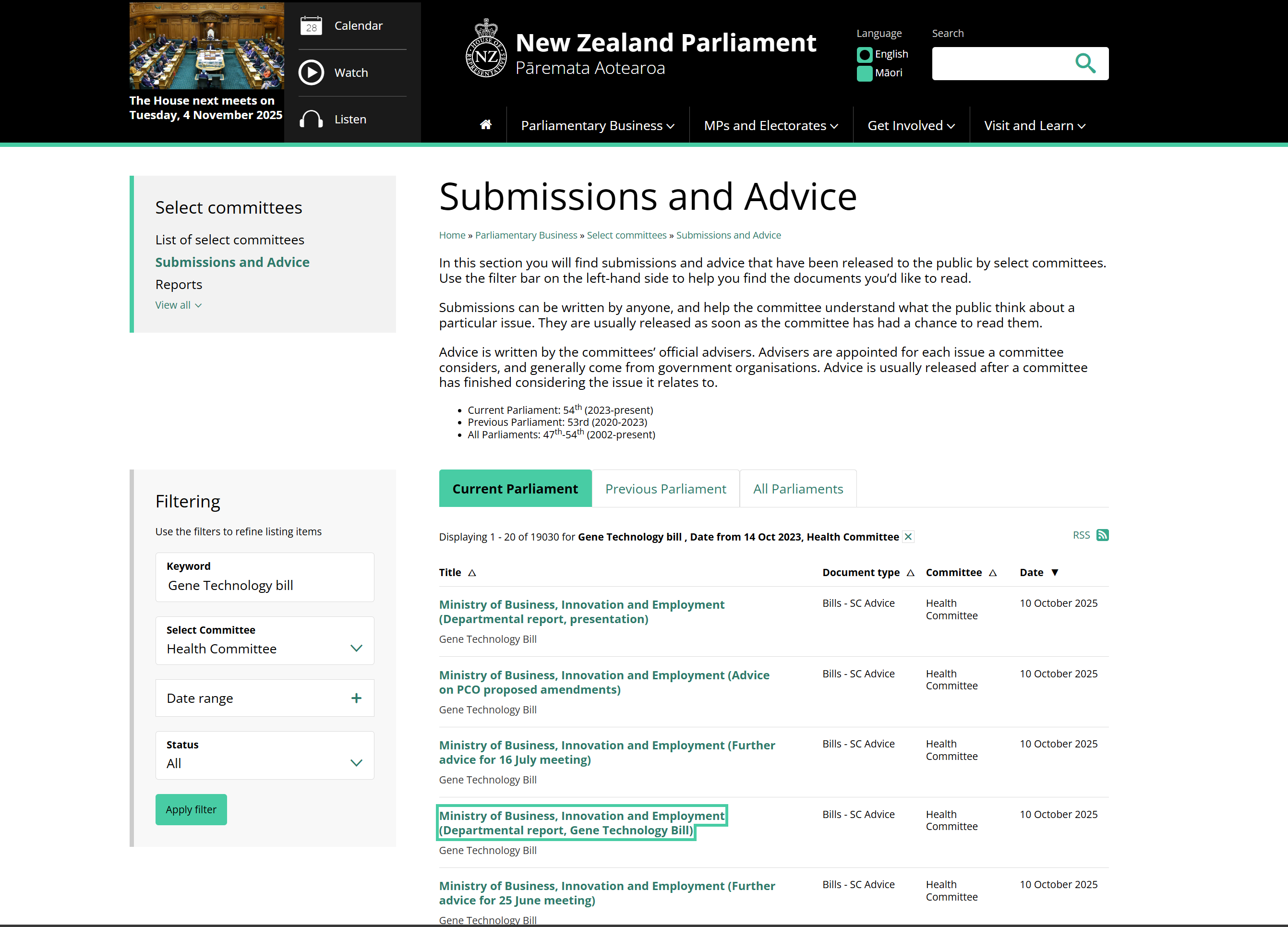 October 10, 2025 MBIE's analysis of the public submissions (including PSGR's) were quietly inserted amongst 19,000 submissions and related documents, instead of in Parliament's Gene Technology Bill Reports docket, or on MBIEs Gene Technology reform information page.