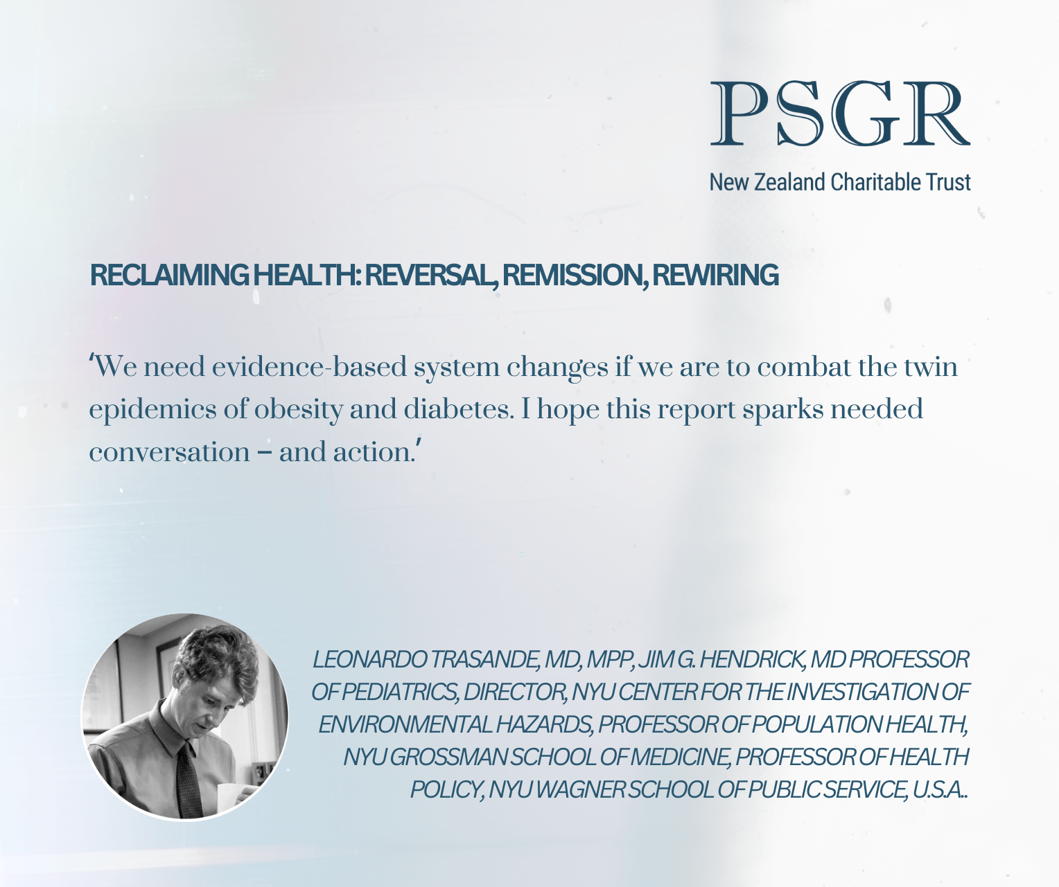 PSGRNZ says the message is ultimately hopeful. The science shows that reversal and remission are possible, and that aligning health policy with human biology offers a credible path to improved wellbeing, reduced health costs, and restored public trust.